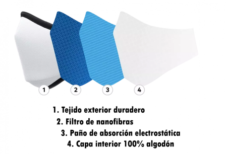 • Lávalas a mano o a máquina. Si las lavas a máquina, utiliza un programa para ropa delicada a 60 °C y detergente neutro. Si usas secadora, hazlo a temperatura baja. La mascarilla se puede lavar 25 veces sin que pierda capacidad de filtrado.